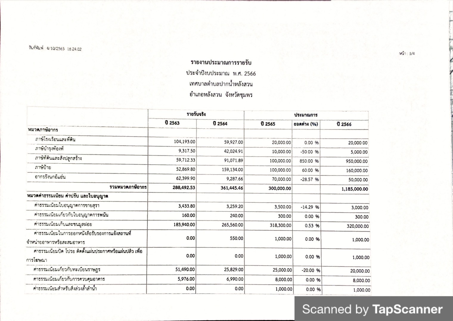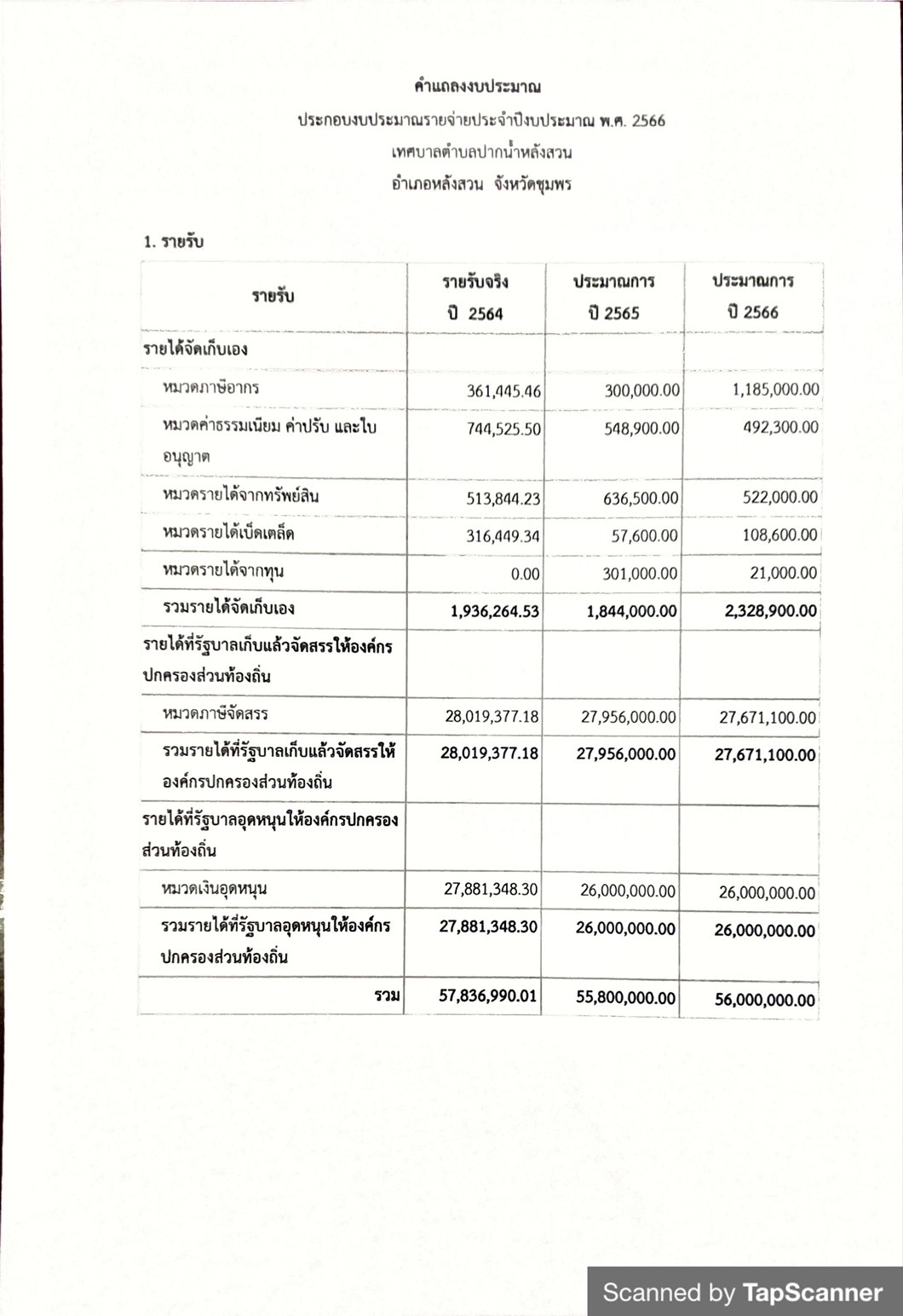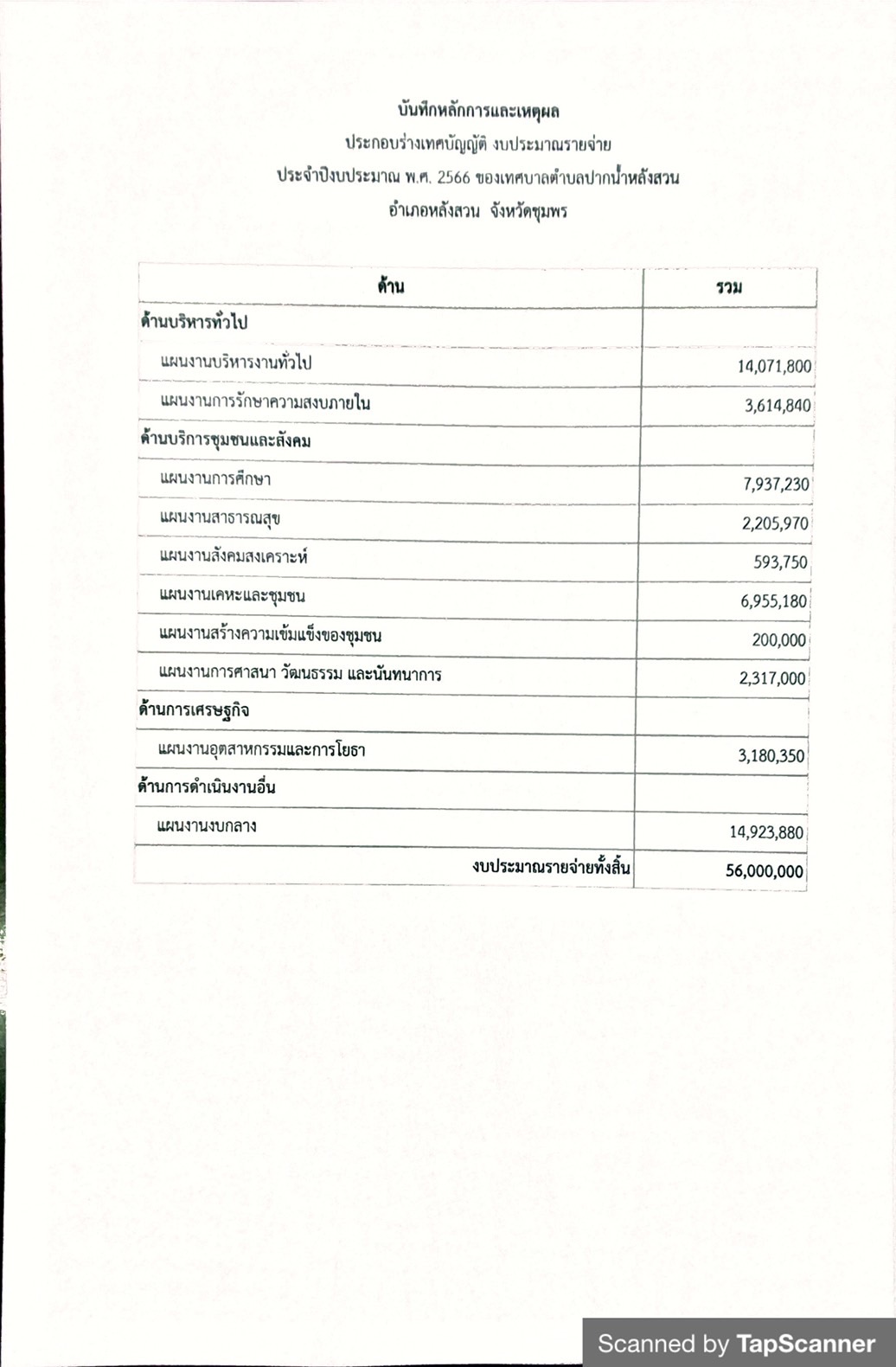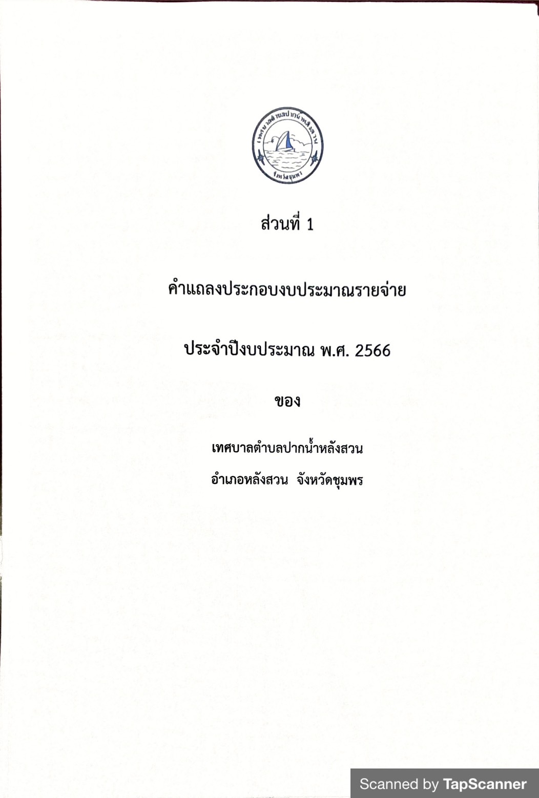 เทศบัญญัติ เรื่อง งบประมาณรายจ่ายประจำปี งบประมาณ พุทธศักราช 2566 ของเทศบาลตำบลปากน้ำหลังสวน