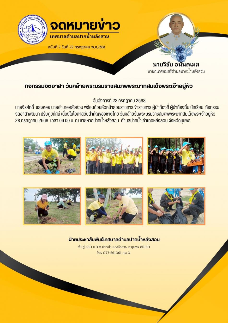 กิจกรรมจิตอาสาพัฒนาในโอกาสวันสำคัญของชาติ วันคล้ายวันพระบรมราชสมภพพระบาทสมเด็จพระเจ้าอยู่หัว [22 กรกฎาคม 2568]