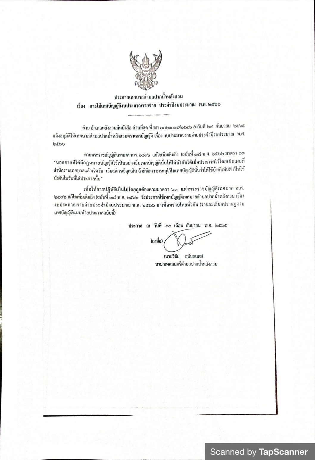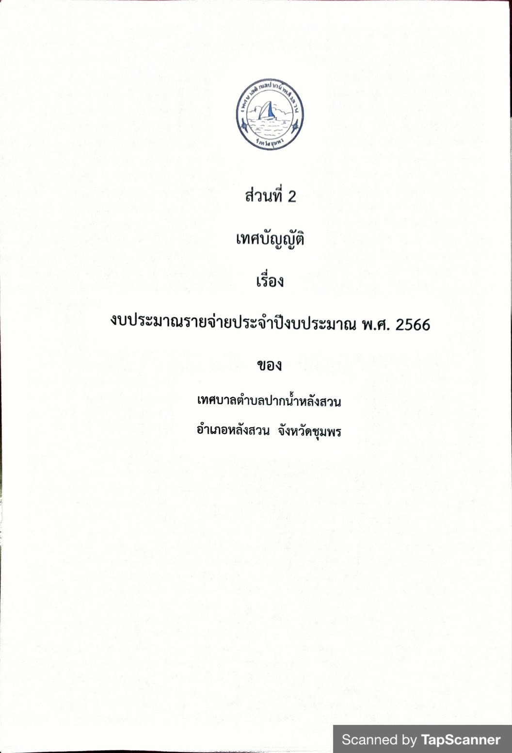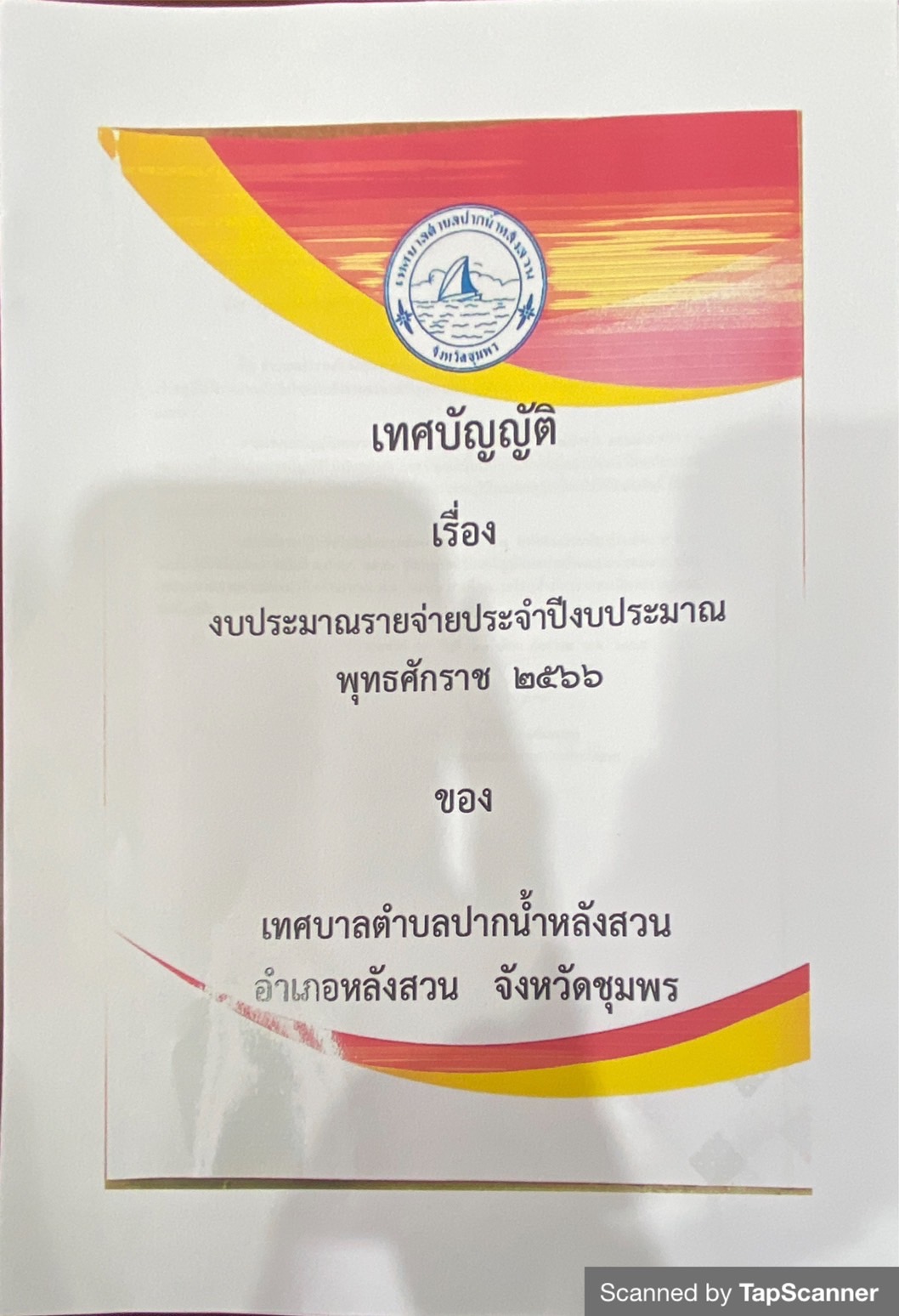 เทศบัญญัติ เรื่อง งบประมาณรายจ่ายประจำปี งบประมาณ พุทธศักราช 2566 ของเทศบาลตำบลปากน้ำหลังสวน