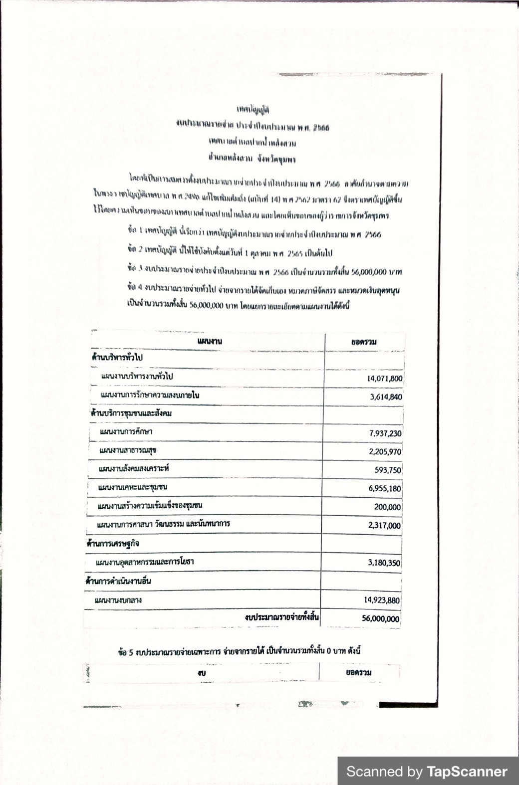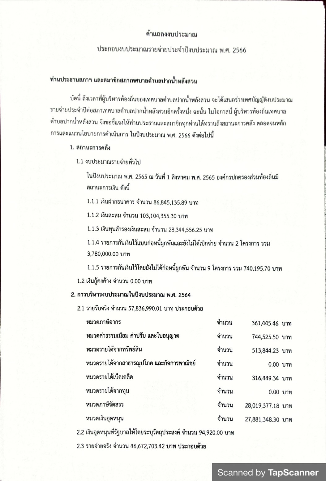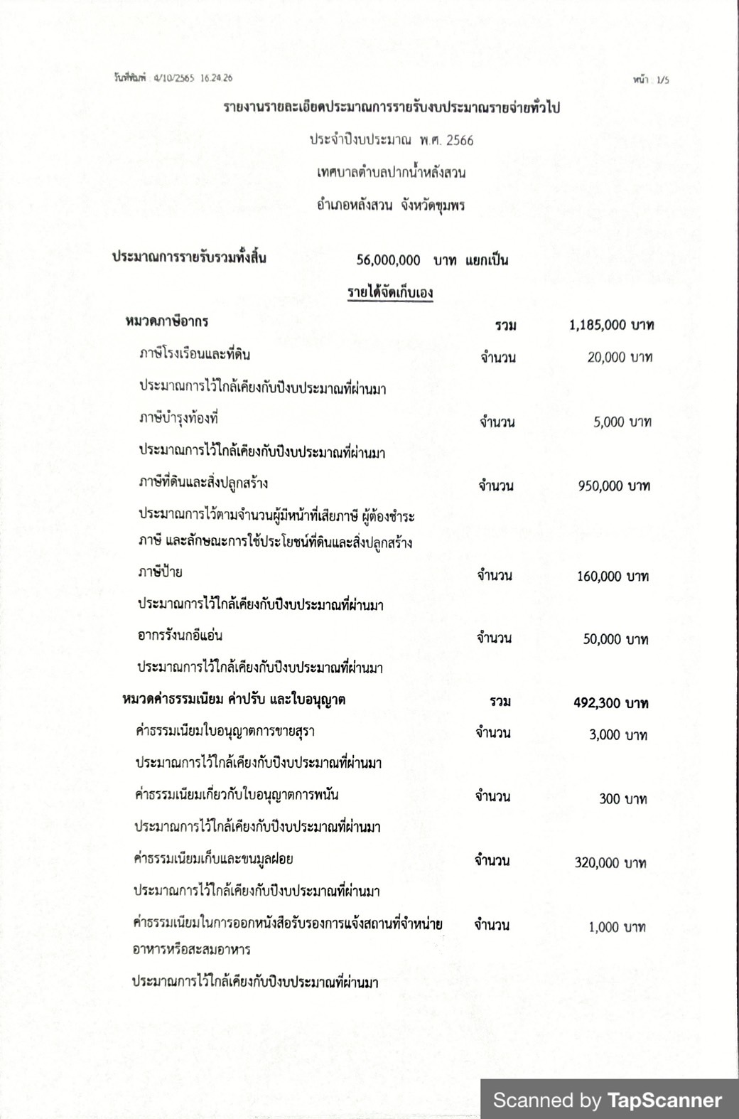 เทศบัญญัติ เรื่อง งบประมาณรายจ่ายประจำปี งบประมาณ พุทธศักราช 2566 ของเทศบาลตำบลปากน้ำหลังสวน